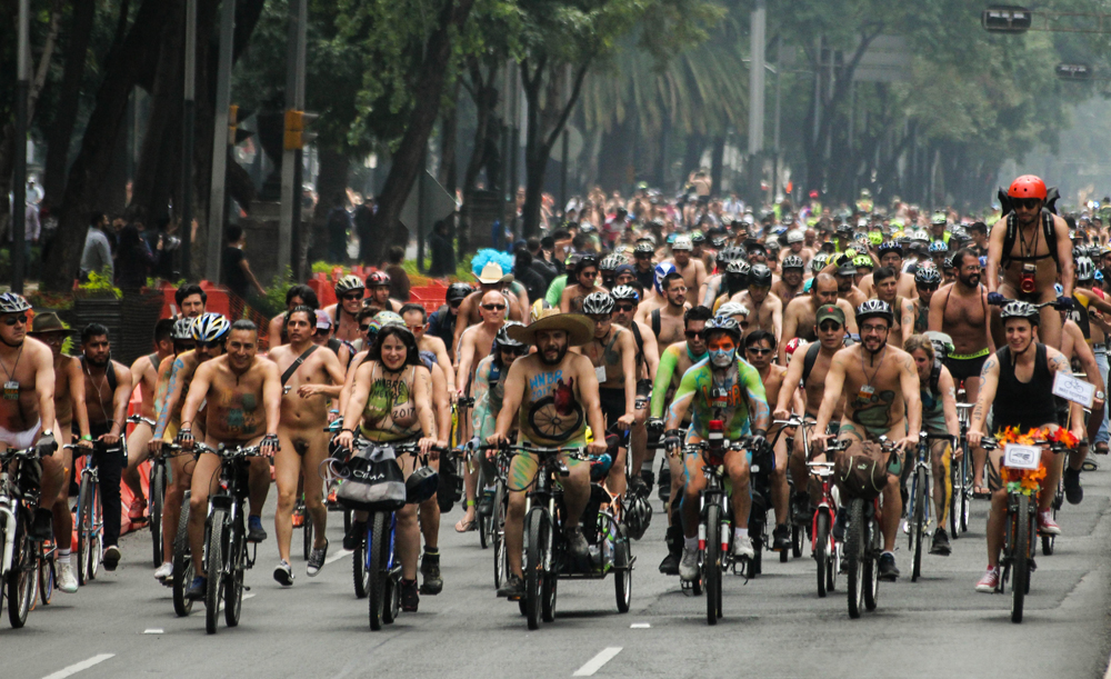 Fotos de la Rodada Nudista organizada por la World Naked Bike ride , en donde cientos de ciclistas recorrieron la avenida Reforma en la Ciudad de México para impulsar a la bicicleta como un medio de transporte publico de bajo impacto ambiental además de exigir derechos de vialidad.