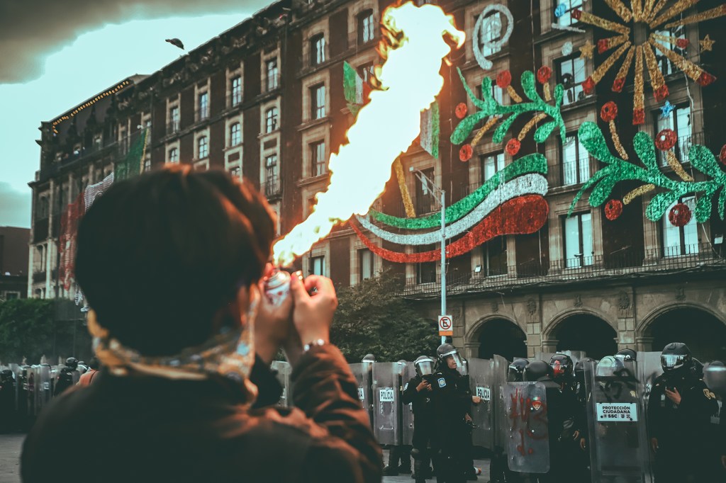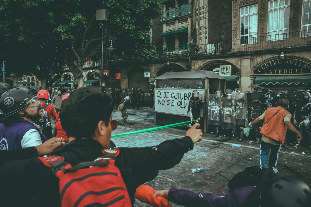 Las fotografías de la jornada no solo capturarán los rostros de la memoria y la justa exigencia de «2 de octubre no se olvida», sino también la violenta colisión entre el Estado y el manifestante. La presencia policial en abundancia fue el detonante para una brutal represión que no distinguió entre manifestantes y medios de comunicación que cubrían la marcha. Las escenas de golpes y empujones recuerdan la dureza de otros desalojos históricos, como el de los maestros, confirmando que la fuerza del aparato estatal sigue siendo abrumadora.